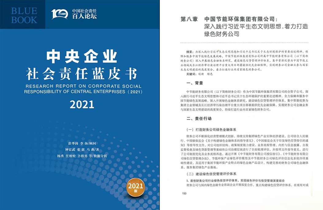 財(cái)務(wù)公司深入踐行習(xí)近平生態(tài)文明思想著力打造綠色財(cái)務(wù)公司案例,入選國資委《中央企業(yè)社會(huì)責(zé)任藍(lán)皮書(2021)》 |