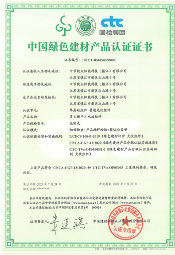 太陽能鎮(zhèn)江公司榮獲首批中國綠色建材產(chǎn)品三星認(rèn)證 |