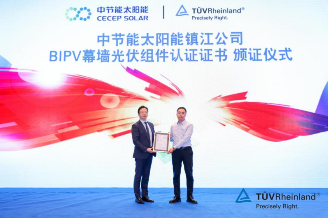 近日,德國萊茵 TüV長三角太陽能測(cè)試中心落成典禮及光伏先進(jìn)技術(shù)研討會(huì)隆重舉行。與此同時(shí),TüV萊茵為中節(jié)能太陽能科技(鎮(zhèn)江)有限公司頒發(fā)了BIPV幕墻光伏組件認(rèn)證證書。TüV萊茵全球電力電子產(chǎn)品服務(wù)副總裁兼大中華區(qū)太陽能與商業(yè)產(chǎn)品服務(wù)總經(jīng)理李衛(wèi)春先生及中節(jié)能太陽能鎮(zhèn)江公司副總經(jīng)理高榮剛出席了頒證儀式。