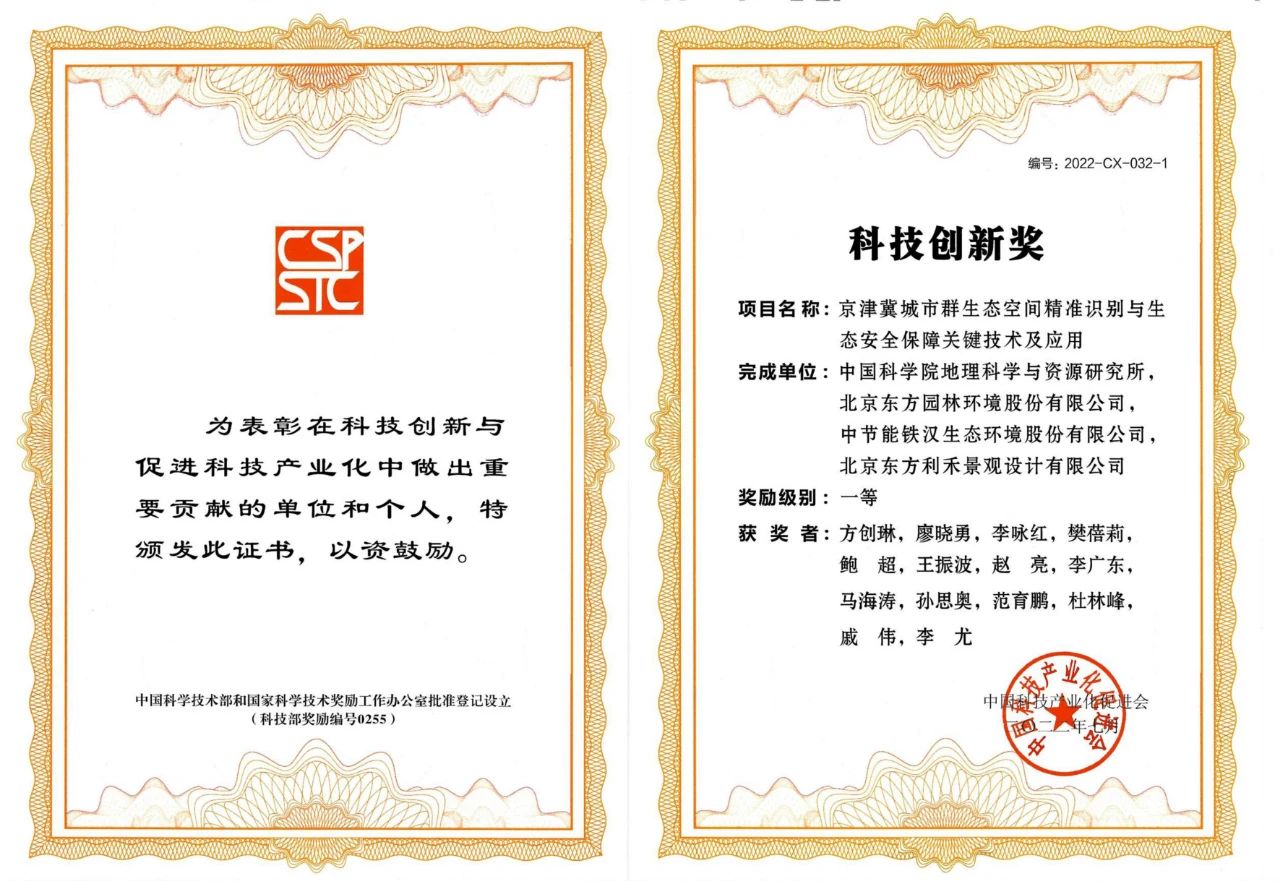 日前,中國科技產(chǎn)業(yè)化促進(jìn)會(huì)正式頒發(fā)2022年度科技創(chuàng)新獎(jiǎng)獲獎(jiǎng)證書,由中節(jié)能鐵漢、中國科學(xué)院地理科學(xué)與資源研究所等單位聯(lián)合申報(bào)的《京津冀城市群生態(tài)空間精準(zhǔn)識(shí)別與生態(tài)安全保障技術(shù)及應(yīng)用》項(xiàng)目,榮獲2022年度科技創(chuàng)新一等獎(jiǎng)。