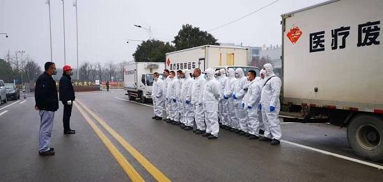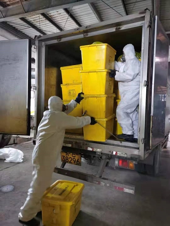 強調醫(yī)療廢物收運及處置安全要求 疫情就是命令,狠抓落實保安全 自1月21日起,徐州公司疫情應急小組每日召開調度會,及時傳達各級環(huán)保部門及上級單位相關文件,掌握疫情動態(tài),并上報應急處理及防控情況;班組每日召開晨會強調醫(yī)療廢物收運及處置安全要求;確保各項應急物資供應、到位;根據(jù)疫情情況,每日增加對廠區(qū)、處置車間的消毒次數(shù)。 1月25日,在得知徐州已有確診病例后,公司立即啟動應急預案及相關措施:一是合理調整及安排人員休假,保證各項工作調度有序;二是在保障處置醫(yī)療廢物能力的同時,調整醫(yī)療廢物處置工藝,減少員工與醫(yī)療廢物接觸頻次;三是嚴格執(zhí)行醫(yī)療廢物和相關設施的消毒工作,對操作人員的防護和體溫進行持續(xù)監(jiān)測;四是做好員工的思想工作,穩(wěn)定員工隊伍,并做好隔離防護;五是及時掌握疫情發(fā)展動態(tài),對已有確診病例的醫(yī)院安排專人、專車收集,減少直接接觸;六是拓寬防護物資采購渠道,切實保障物資供應,同時做好出入庫登記。