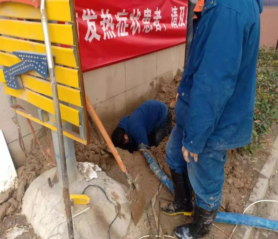 目前正處于抗擊新冠肺炎疫情的關(guān)鍵時期,中環(huán)保水務(wù)公司下屬懷遠公司全體員工堅守崗位,立足本職做好供水保障工作。 2月4日11時,公司管線所值班人員接到報修電話;新城區(qū)江北花園小區(qū)內(nèi)管道漏水。管線所所長張浩立即趕到現(xiàn)場查看情況,確定是小區(qū)內(nèi)DN160PE供水主管道漏水,影響整個江北花園小區(qū)202戶居民用水。因恰逢中午用水高峰期,張浩和管線所唐本紅隊長商議后決定在13時用水高峰期結(jié)束后立即對漏點進行開挖維修。