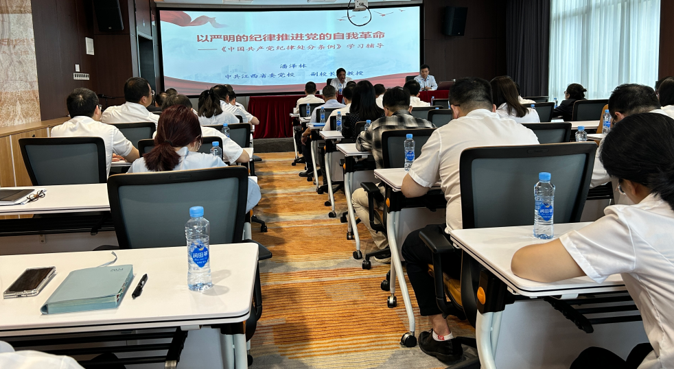 為深入學習貫徹習近平總書記關于加強黨的紀律建設的重要論述,推動黨紀學習教育取得實實在在成效,5月21日,江西公司黨委組織開展學習貫徹《中國共產(chǎn)黨紀律處分條例》專題解讀培訓,邀請江西省委黨校副校長潘澤林教授作專題輔導。公司領導班子成員參加專題輔導。