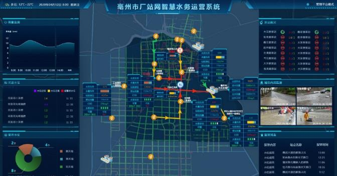 通過(guò)亳州市供排水智慧運(yùn)營(yíng)平臺(tái),一張圖縱覽污水處理廠、泵站、管網(wǎng)實(shí)時(shí)數(shù)據(jù),開(kāi)展遠(yuǎn)程管理與調(diào)控。項(xiàng)目覆蓋污水處理廠3座,總規(guī)模12萬(wàn)噸/日;中水廠2座,總規(guī)模7萬(wàn)噸/日;污水管網(wǎng)373公里,雨水管網(wǎng)643公里,污水泵站13座,雨水泵站5座。